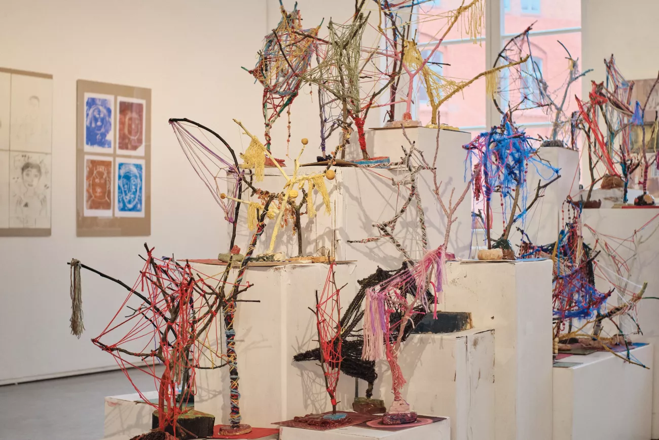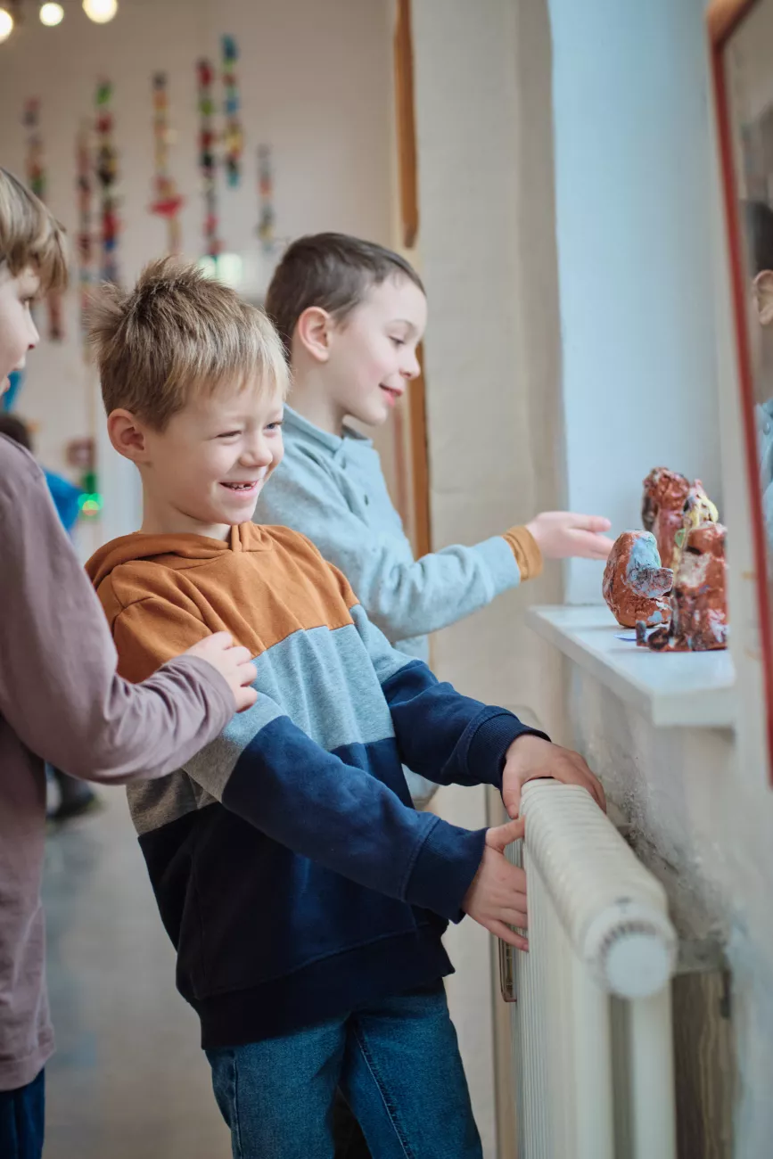 Wir schauen uns die Ausstellung an und überlegen, welche Formen uns auffallen. Mit Ton gestalten wir kleine Figuren oder Objekte, die gut in den Ausstellungsraum passen könnten. Am Ende entstehen viele unterschiedliche kleine Tonarbeiten, die ihr mit nach Hause nehmen könnt.